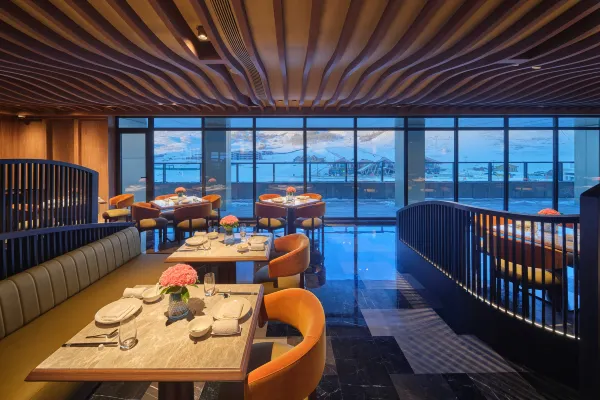 將粵式烹調技法融入伊寧在地食材,以地方香料詮釋風味,讓餐點佳餚不僅延續經典技藝,也呼應當地文化語境。空間採用伊寧建築外廊形制,臨水而設,讓用餐在風味與環境之間自然交融,展現一種貼近在地的細緻餐桌體驗。