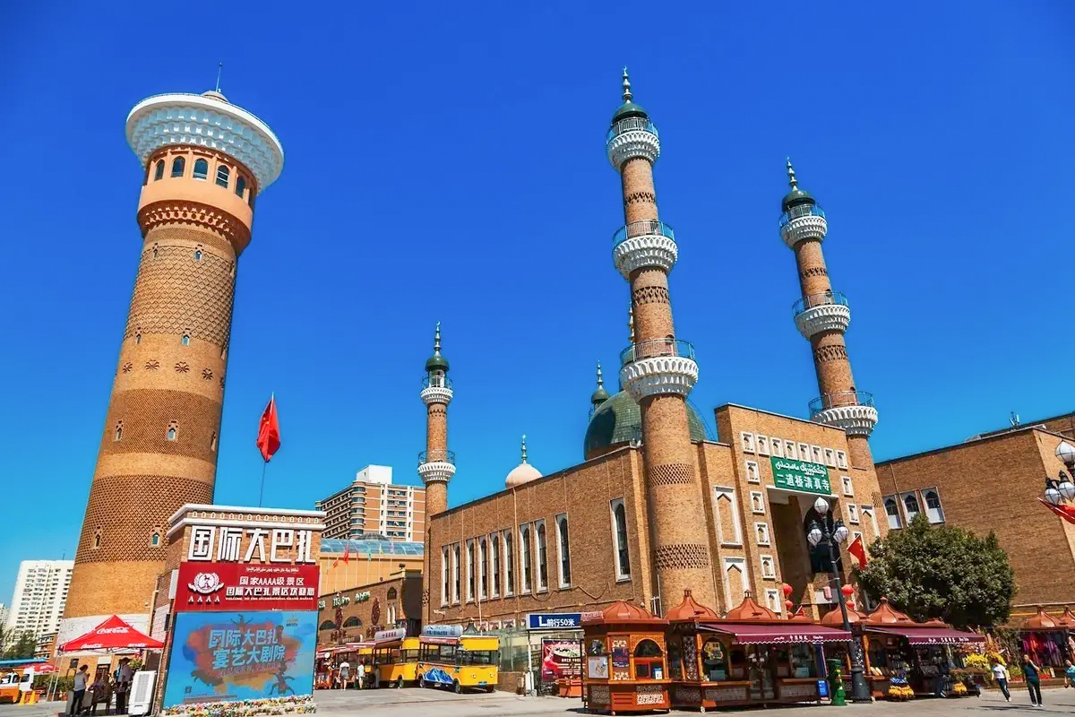 新疆國際大巴札為新疆十佳建築之一,以伊斯蘭風格穹頂與拱廊構築出獨特空間,重現古絲綢之路市集的熱鬧景象。行走其間,香料、地毯與手工器物鋪展開來,人聲與交易交織成日常,讓人感受到西域文化仍在此延續。
