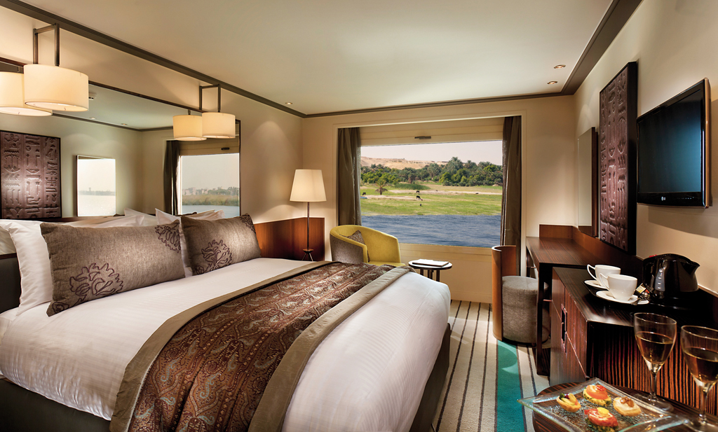 ► 17:00 享受下午茶。邊喝茶邊欣賞河景,真是享受得不得了!等到傍晚時分,別忘了踏上甲板看夕陽西下的美景喔!埃及有句老話︰「凡喝過尼羅河的水,就一定會回到埃及來。」入境隨俗,您也來品嚐埃及的茶葉吧!