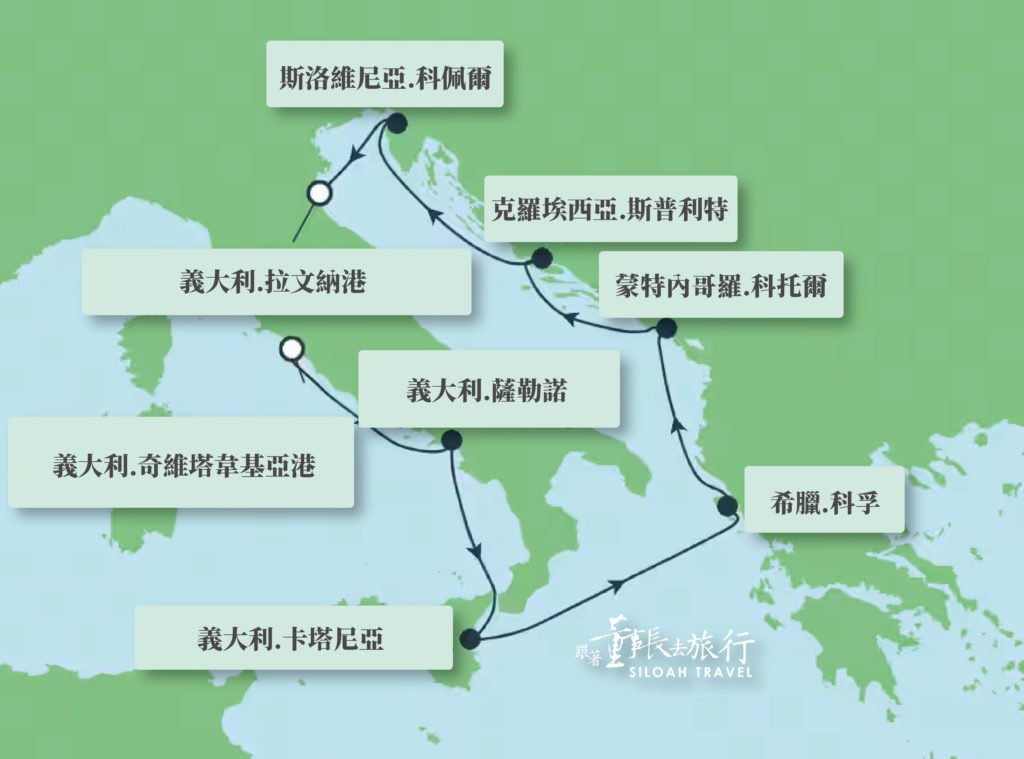 (義大利⮕希臘⮕蒙特內哥羅⮕克羅埃西亞⮕斯洛維尼亞)