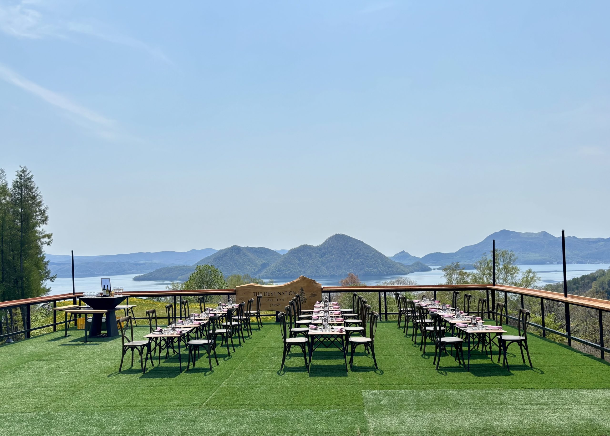 位於北海道洞爺湖畔的景觀餐飲空間,坐擁開闊湖景與群山環繞的自然環境,打造結合美食與風景的療癒體驗。主打戶外BBQ與湖畔用餐,讓旅客在藍天與湖光相映的景致中,享受悠閒愜意的午餐時光。 在溫暖陽光與清新空氣中,一邊品嚐炭火燒烤料理,一邊欣賞洞爺湖的寧靜風光;同時,我們也特別為貴賓安排現場吉他音樂表演,在輕柔旋律陪伴下,讓整段用餐時光更加放鬆且難忘。結合自然美景、精緻料理與音樂氛圍,是一場充滿質感的湖畔午間饗宴。