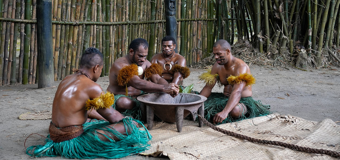 觀看斐濟傳說的表演、學習斐濟拉利鼓的基本技巧,並淺嚐斐濟的國飲—卡瓦。晚餐品嚐傳統土窯 (Lovo)烹調出的道地斐濟佳餚,感受他們的熱情與好客。