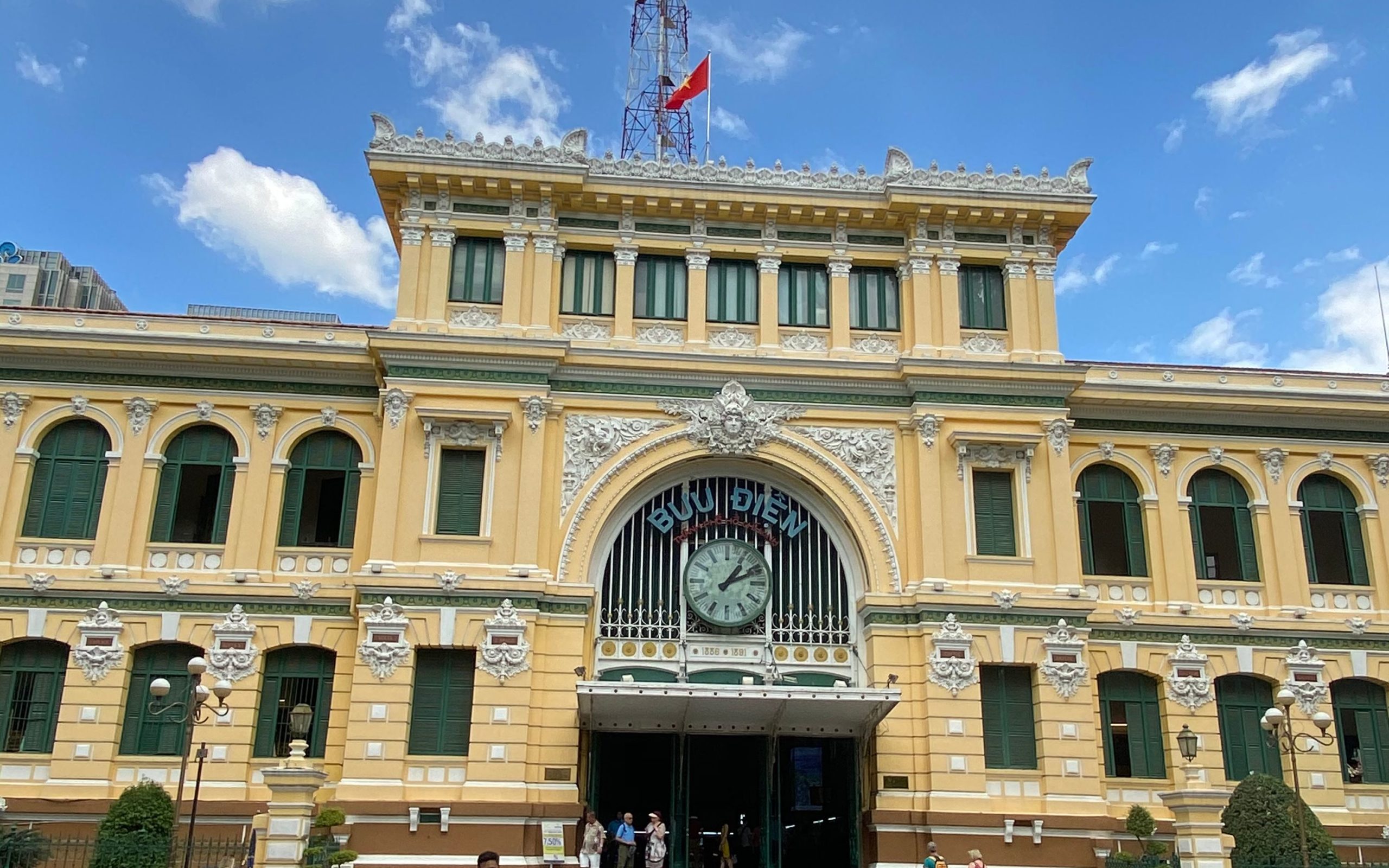 建於1886~1891年間,於1892年正式投入營運,是越南最古老且具代表性的郵政局之一。牆上掛有 1892 年胡志明周邊地圖與 1936 年電報線地圖,並設有復古電話亭、時鐘、胡志明肖像等,兼具歷史與裝飾價值。