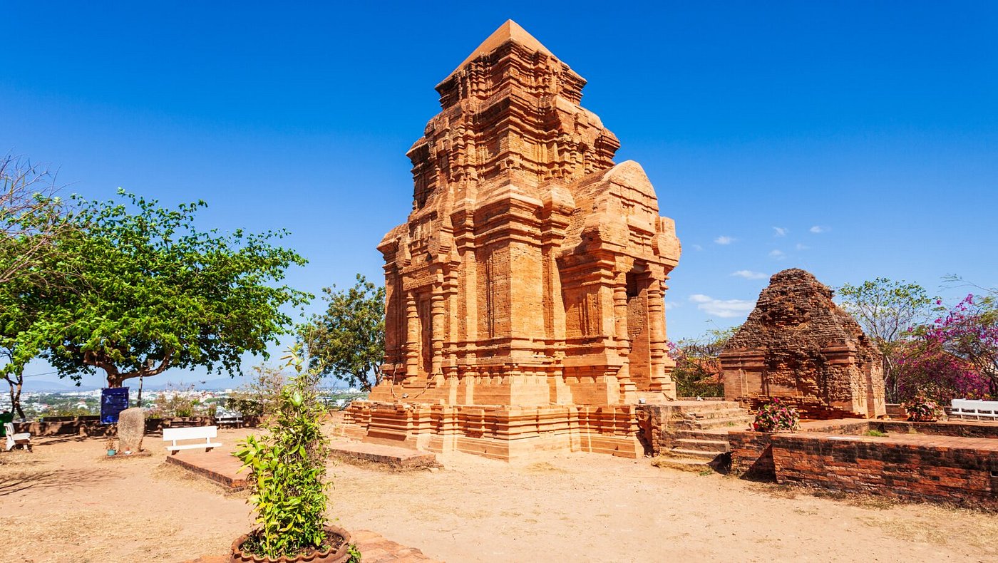 現存三座建於西元九世紀的磚砌宗教建築,包含兩座高塔和一座小型聖殿。遺址最大聖殿內保留著象徵濕婆神的林伽與約尼造型,建築採用前吳哥時期高棉風格,磚牆表面可見仿柱式壁柱與部分磚雕遺蹟。作為越南現存最古老的占城佛塔之一,登頂可俯瞰美奈全景。