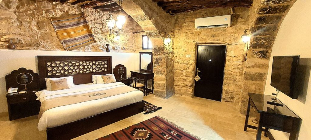 客房設計靈感源自古代約旦貴族宅邸,以手工雕刻木飾、幾何拱門與溫潤石材打造出充滿文化質感的空間。