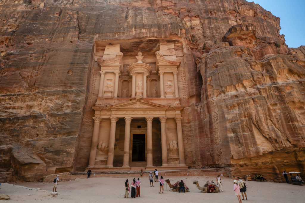 佩特拉是來到約旦必訪的景點,岩石呈現特殊的赤褐色,有 「玫瑰城」美稱,由一整塊砂岩雕刻而成的卡兹尼神廟等建築遺跡,工藝之美,保證讓您讚嘆又讚嘆。