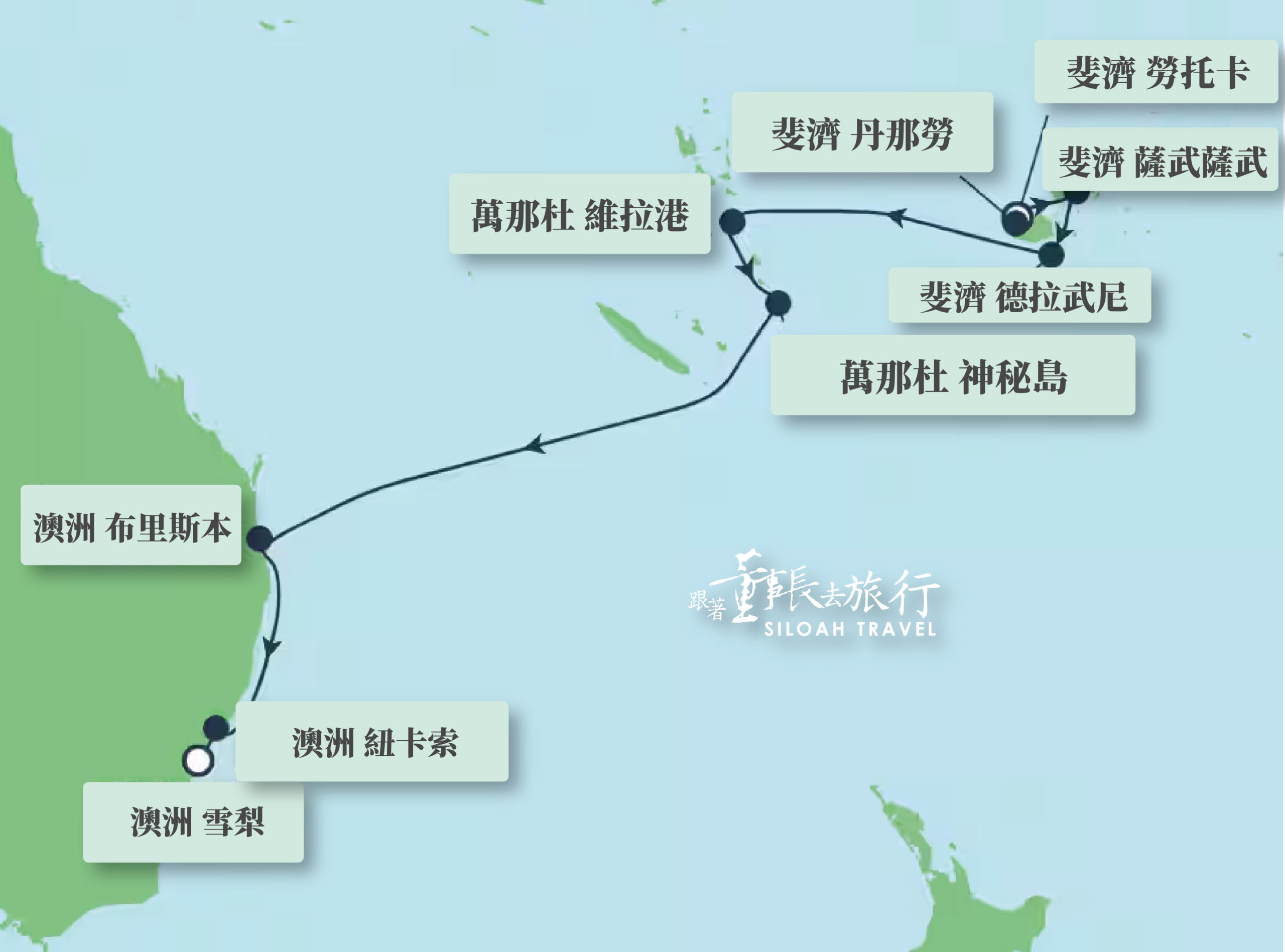 斐濟⮕丹那勞⮕薩武薩武⮕德拉武尼⮕瓦努阿圖.維拉港⮕瓦努阿圖.神秘島