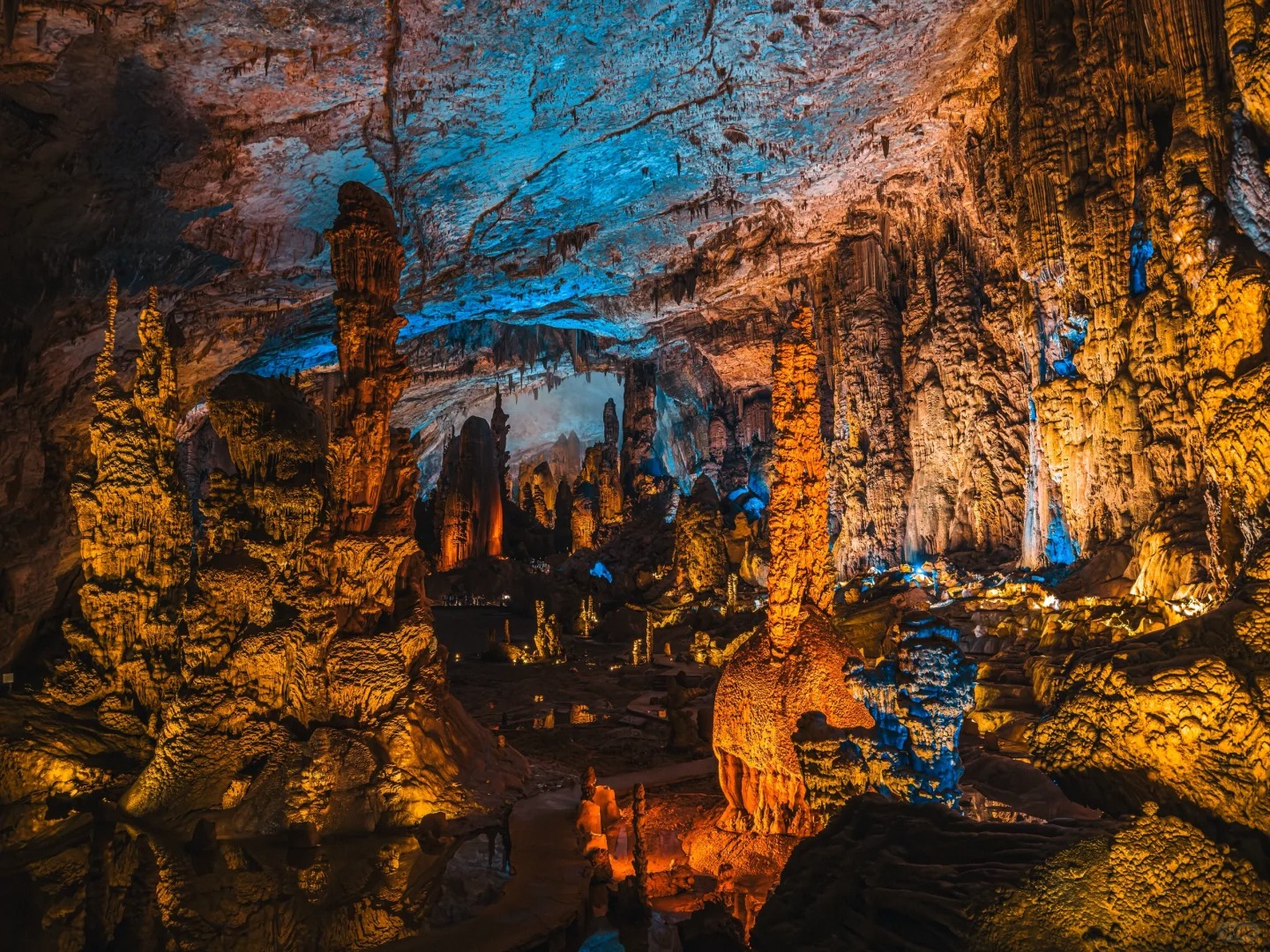 織金洞是中國規模最大、發育最完善的喀斯特地貌溶洞,全長13.5公里,已開放約6公里供遊客參觀。洞內擁有密集的「地下塔林」及超過四十種獨特的鐘乳石形態,堪稱「中國溶洞之王」。1994年織金洞加入國際旅遊洞穴協會,2004年被評為國家地質公園、2015年獲得聯合國教科文組織認證世界地質公園、2022年晉升為中國5A級旅遊景區。置身洞中如同探索地底奇幻世界,感受自然的鬼斧神工與千年沉積的神秘魅力。