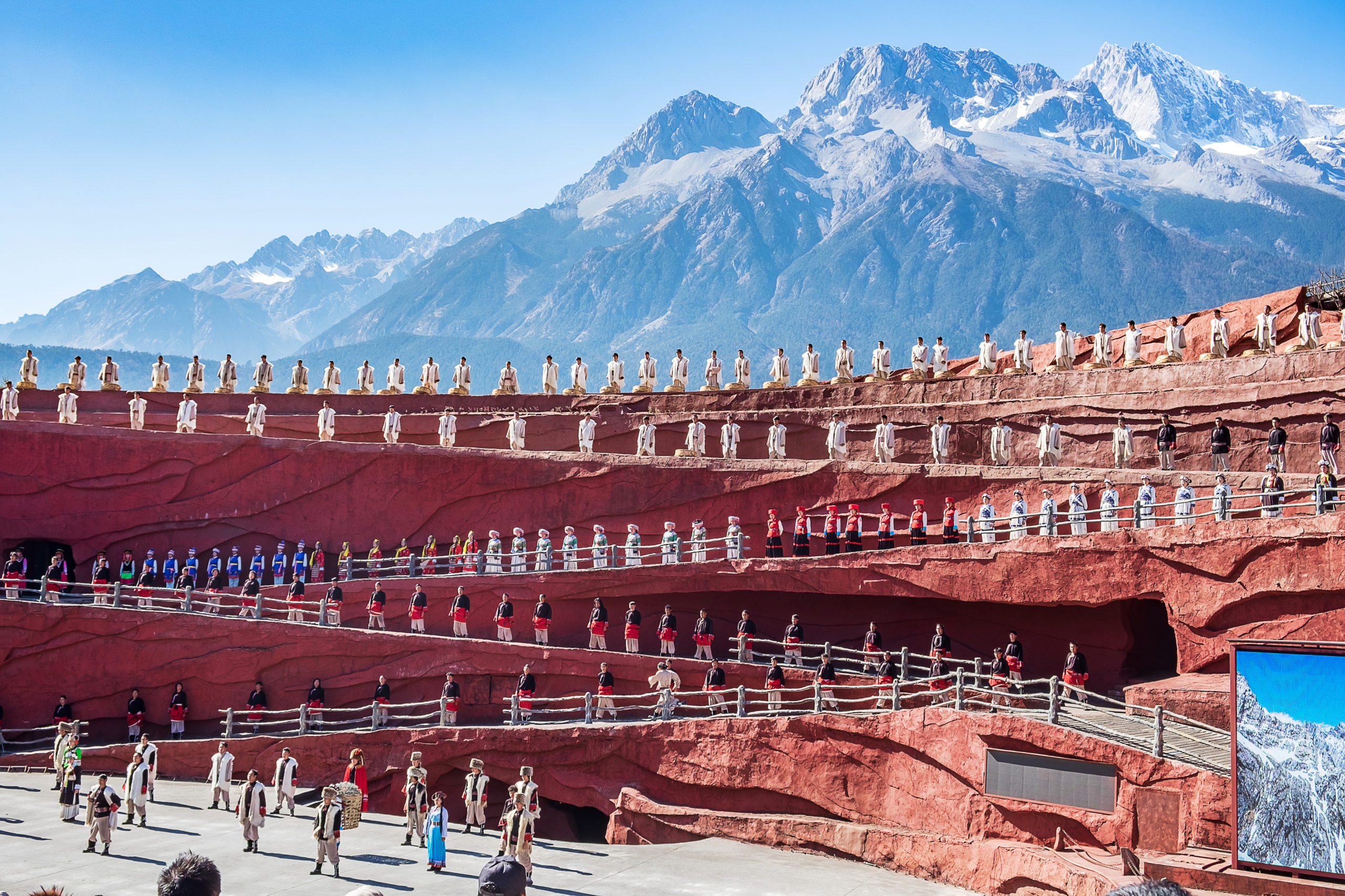 演出場地位於玉龍雪山腳下,背景是壯麗的雪山和湖泊,加上精美的服裝和燈光效果,給觀眾帶來了一場視覺和聽覺的盛宴,被譽為中國最成功的戶外實景演出之一。
