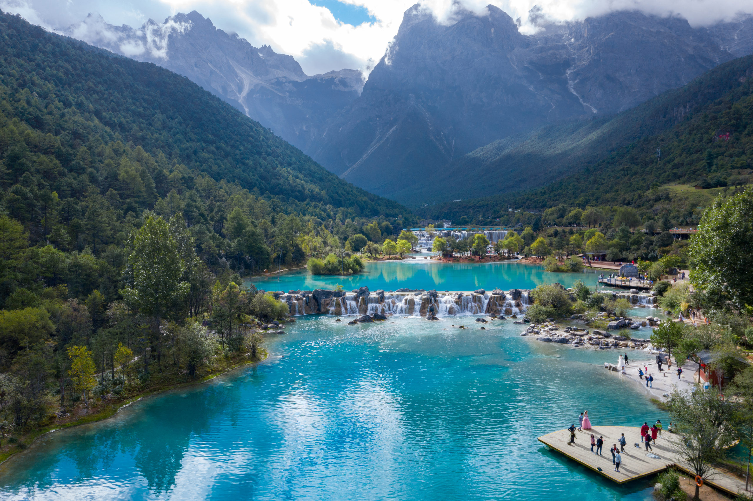 位於玉龍雪山腳下,是麗江的兩個知名景點。藍月谷以其幽靜秀美的湖泊和蔚藍的湖水而聞名,湖水清澈見底,常年呈現出淡淡的藍色,故名藍月谷。白水河則是一條從雪山融化的雪水形成的溪流,水質清澈,河岸被翠綠的樹林環繞,景色宜人。